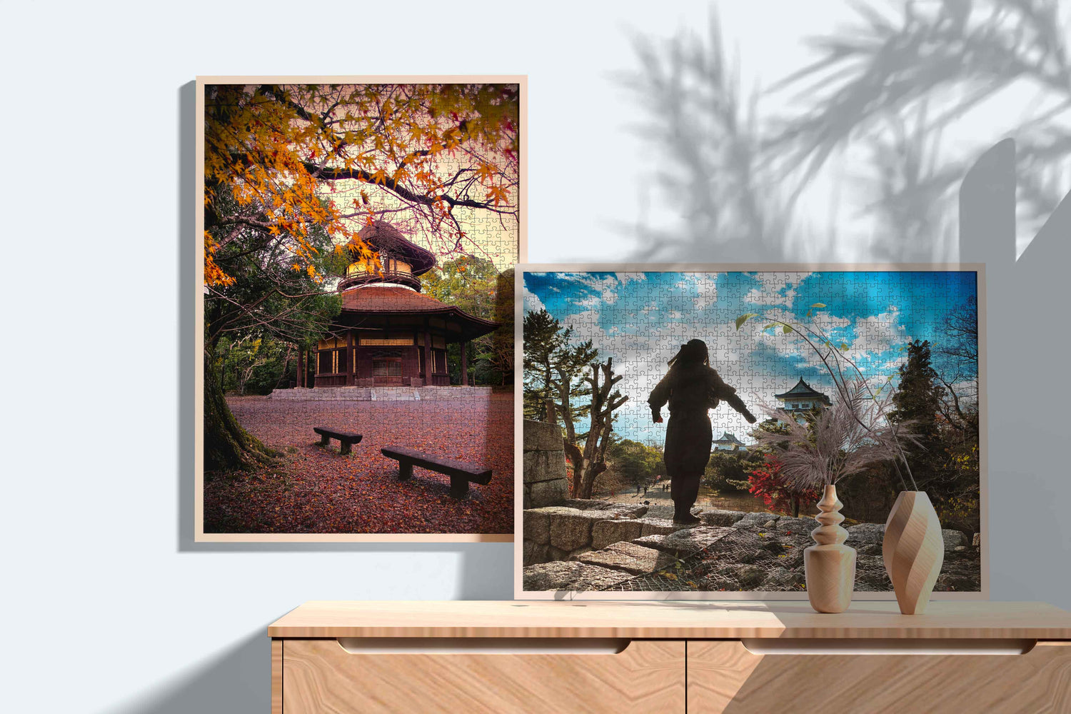 Un seul puzzle. Deux paysages du Japon. Une vidéo de voyage. Quand une face devient trop difficile à monter, retournez-le pour progresser sur l’autre. Et en bonus ? Vous changez de décoration sans rien racheter. 2 paysages dans une seule boîte.